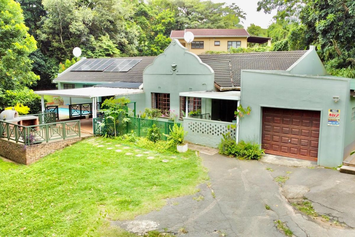 Coastal entertainer's retreat in sought-after Umtentweni with multi-unit income potential — undercover patio with built-in braai overlooking pool, five bedrooms, four bathrooms and multiple garages.