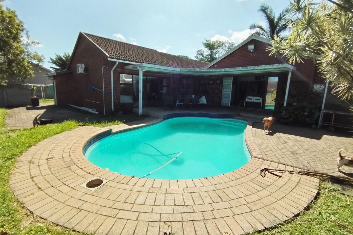 Entertainer's retreat in Arboretum, Richards Bay — open-plan living flows to a sparkling pool. Three bedrooms, 2.5 bathrooms, double garage and carport.