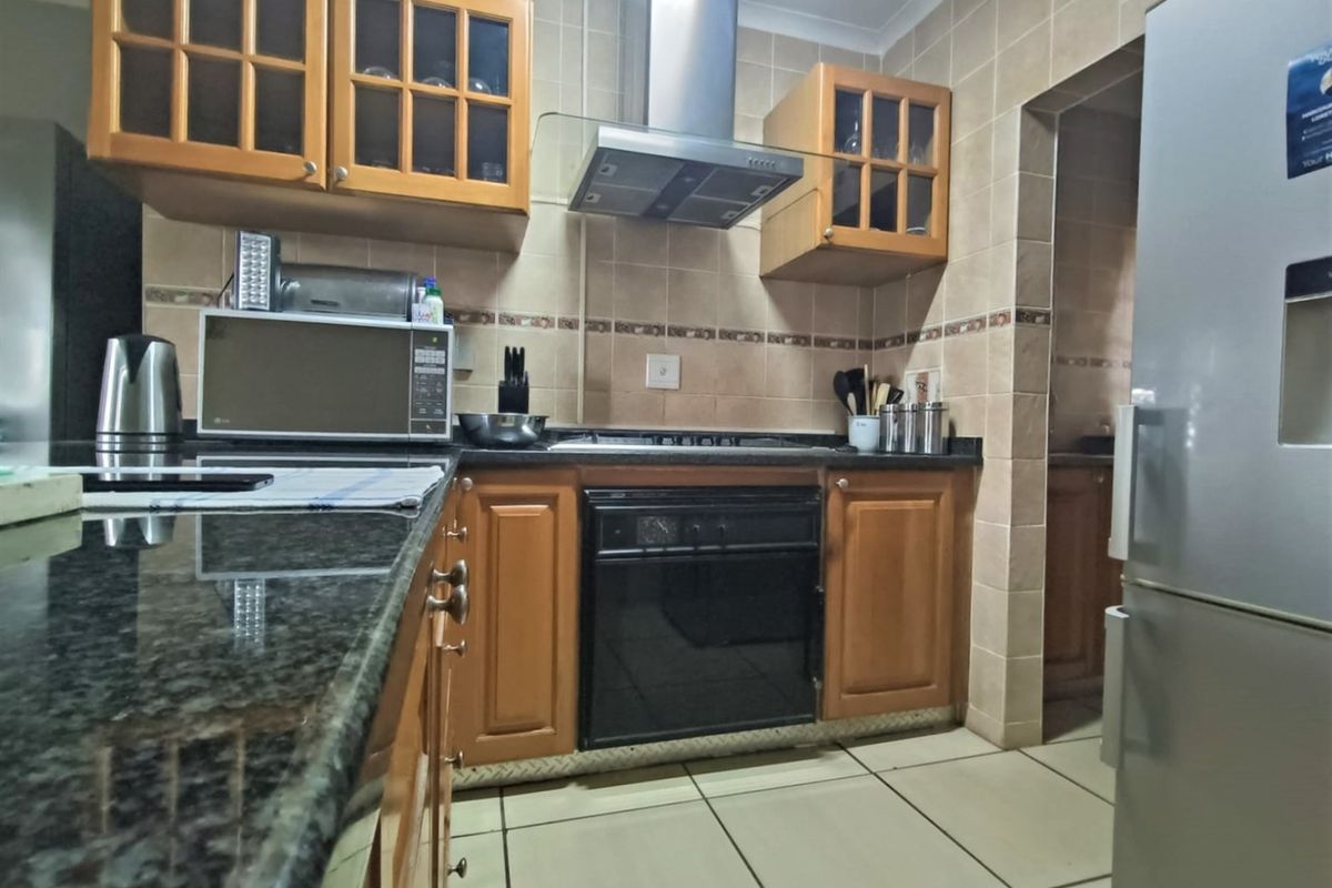 This lovely face-brick townhouse is located in a wonderful neighborhood in Meerensee. The interior has soft pastel finishes with tile flooring throughout the house, which gives it a cool effect for the hot Summer days. There is a large formal lounge with laminated flooring and an open-plan family room and dining room. The kitchen is fully fitted with oak finishes, a gas stove, and granite tops with a separate scullery. The house boasts three bedrooms and two bathrooms of which one is en-suite to the main bedroom.