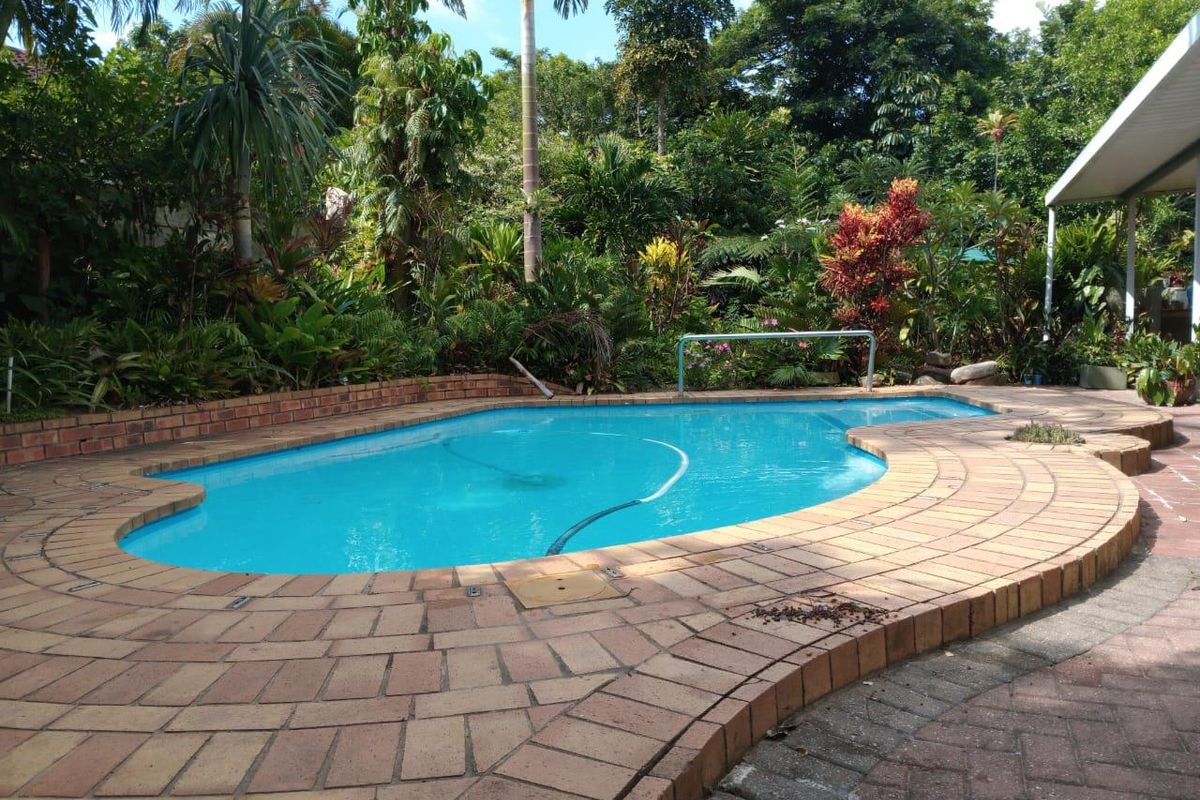 Poolside entertaining and relaxed family living in Meer en See, featuring a built-in braai entertainment area, koi pond and modern kitchen — four bedrooms, two bathrooms, double garage.