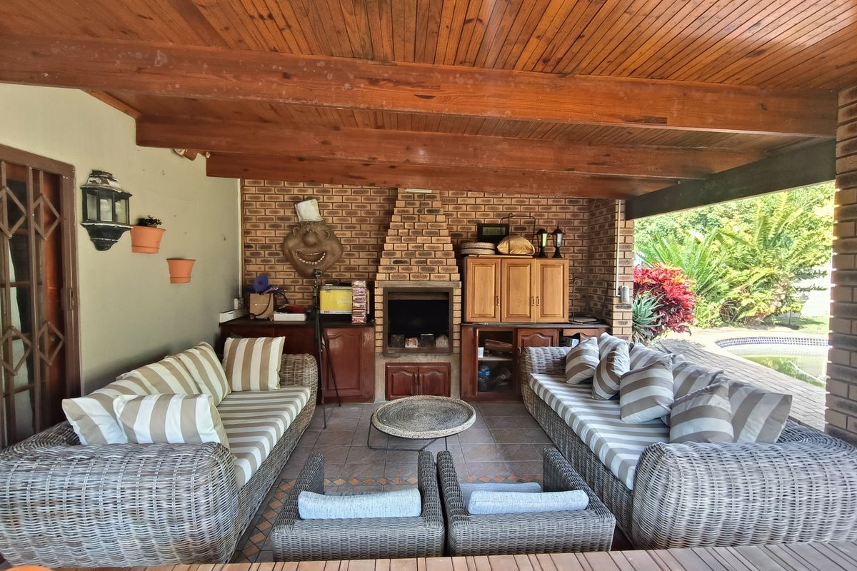Welcome to a home designed for comfort, space, and entertainment! As you step inside, a charming reception area greets you before leading into an open-plan lounge and dining space — ideal for family gatherings or hosting guests. The kitchen is a chef’s dream, featuring a pantry, separate laundry, granite countertops, gas cooking, and a serving counter connecting to the dining area. From the kitchen, flow seamlessly into a second lounge and bar area with a shower — perfectly positioned for entertaining and easy access to the outdoor entertainment zone and sparkling pool. For added energy efficiency and cost-saving benefits, the property is also fitted with a solar geyser.