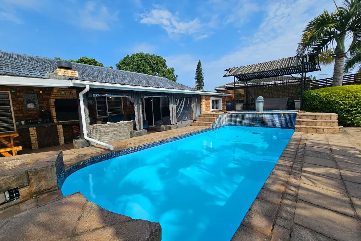 Outdoor entertainment areas include a covered patio with built-in braai, pergola area for additional socializing or dining, Sparkling low-maintenance swimming pool.
