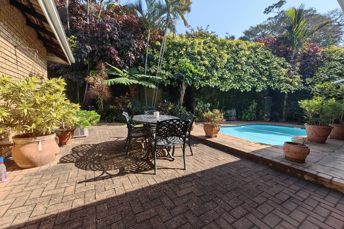 Step outside to discover a beautifully landscaped garden that complements the serene surroundings, complete with a very private swimming pool—perfect for refreshing dips or sun-soaked lounging. The entertainment area is ideal for hosting gatherings, with ample space for friends and family to enjoy.