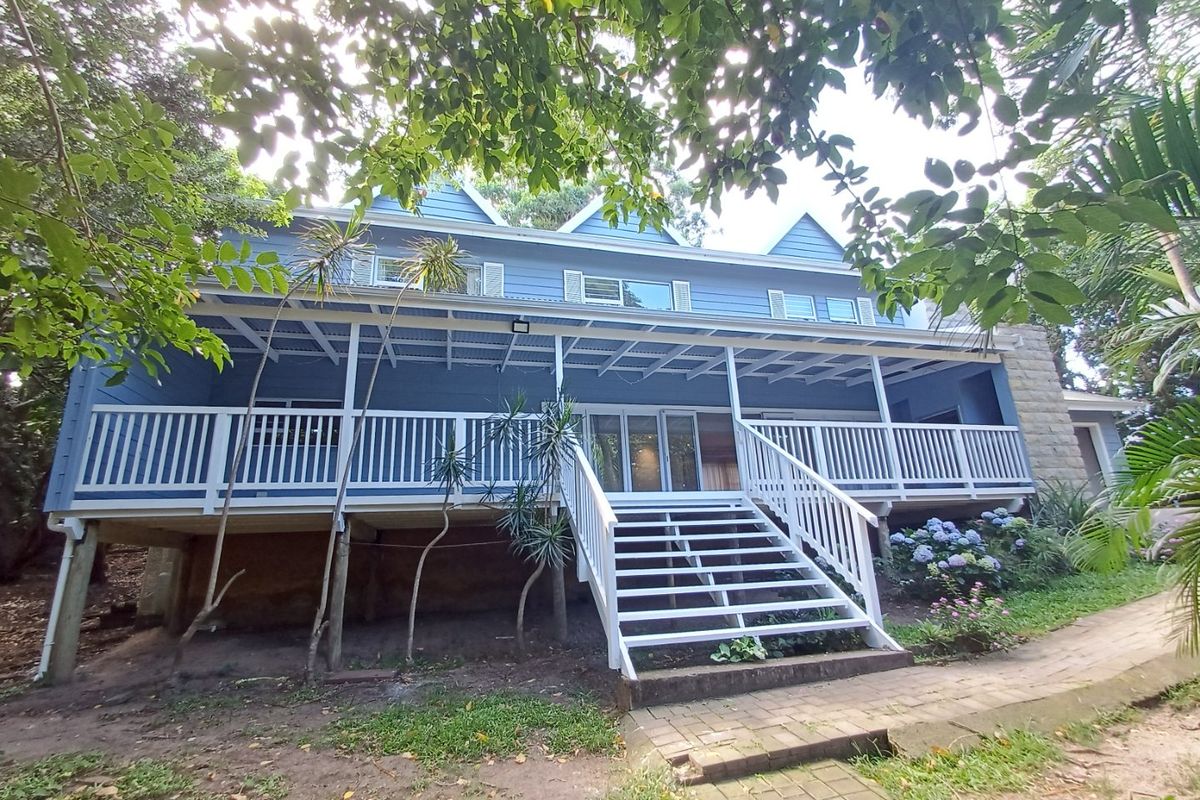Seaside family retreat in Southbroom, steps from beaches and golf, with expansive verandah and built-in braai, dog-friendly pool garden — four bedrooms, four bathrooms.