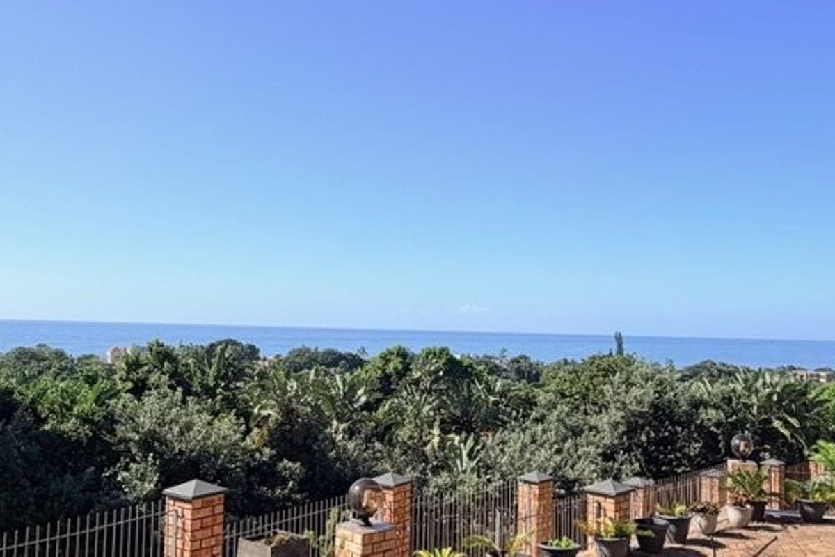 Coastal entertainer's retreat in Trafalgar with sweeping sea views and face-brick charm; upper-level lounge, ocean-view granite kitchen, one-bedroom flat, five bedrooms and double garage.