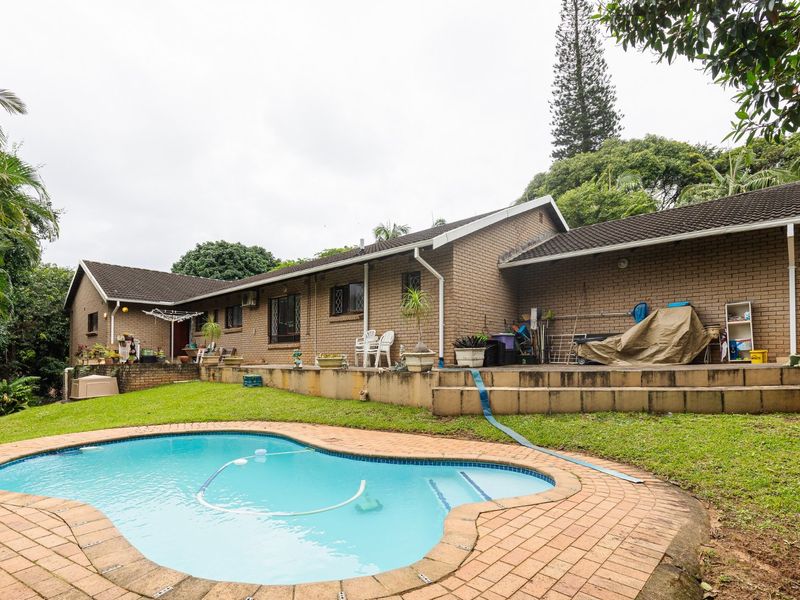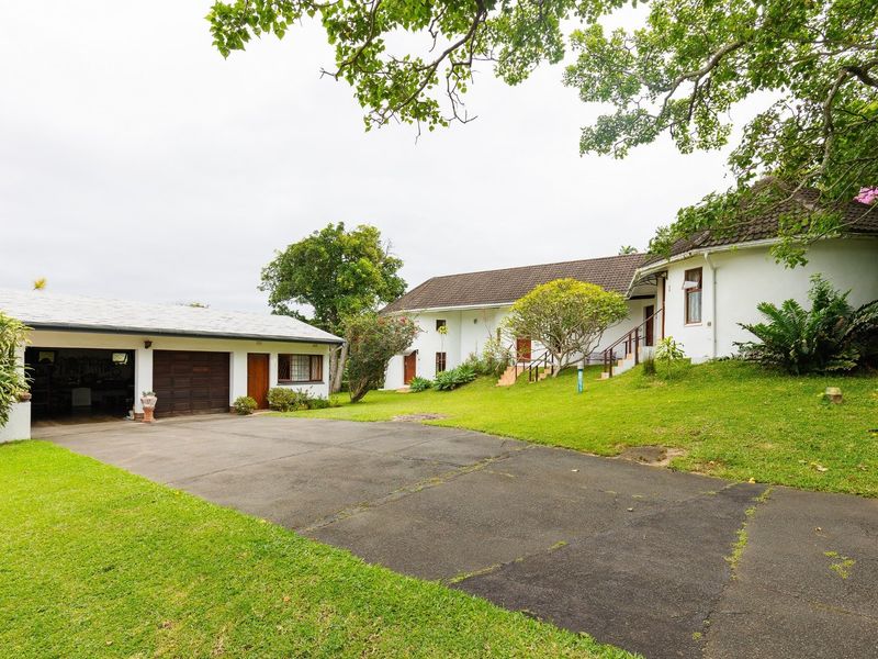 Five bedrooms, 2.5 bathrooms, 1667 m² land, double garages, and a swimming pool near Southbroom village and beaches.