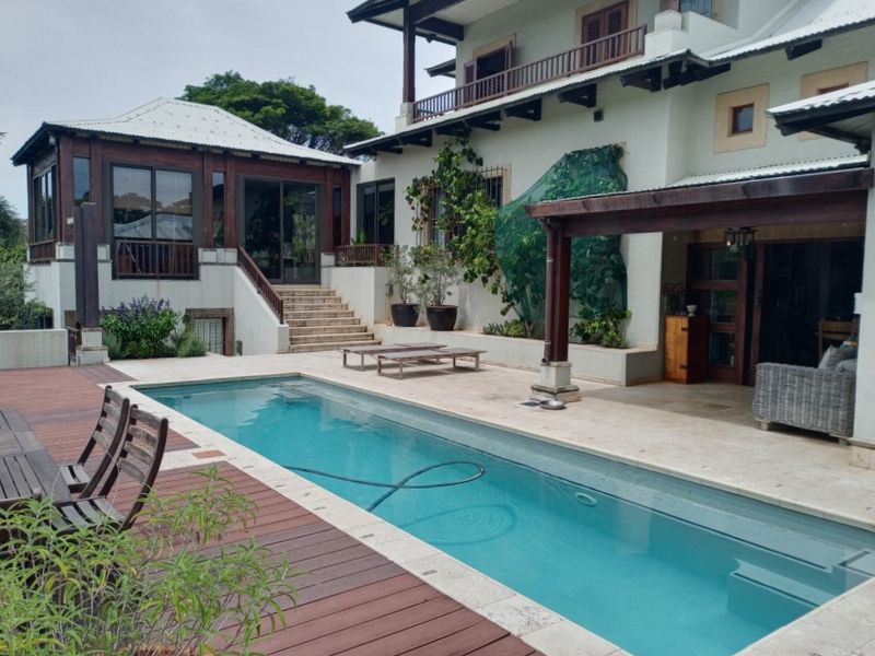Seaside entertaining and endless Indian Ocean sunsets in prestigious Southbroom, steps from the beach — nine en-suite bedrooms and a rim-flow pool for relaxed gatherings.