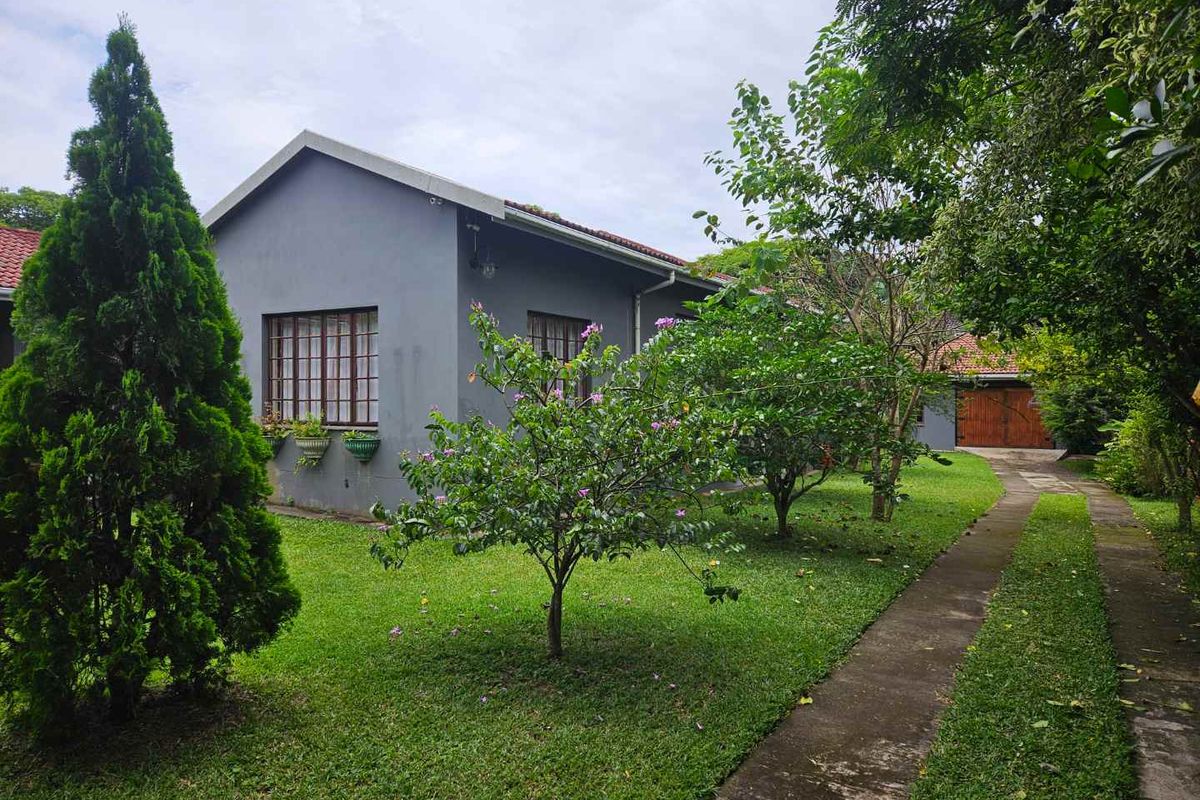 Step out from the kitchen onto a massive covered patio, the ideal spot for sundowners while overlooking the sparkling swimming pool. Across the manicured lawn, a self-contained Bachelor Apartment offers the perfect space for guests or potential rental income.