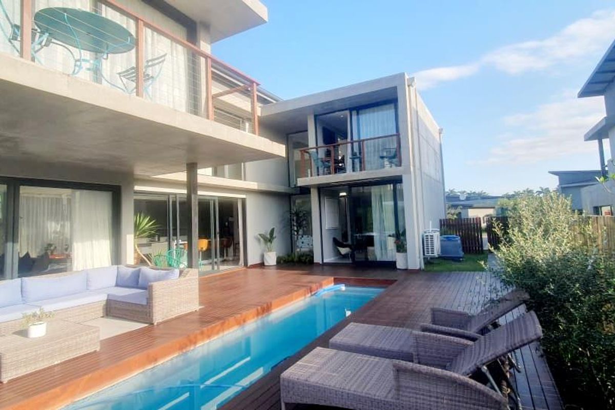 Relaxed coastal living minutes from Tinley Beach in Palm Lakes Estate, offering four bedrooms, expansive double-volume interiors and private pool with built-in braai for entertaining.