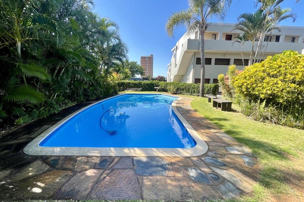 Relaxed coastal living in Umhlanga with easy beach access; ground-floor townhouse offers a large private patio for entertaining, communal pool, two bedrooms, two bathrooms and automated garage.