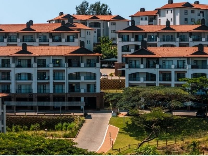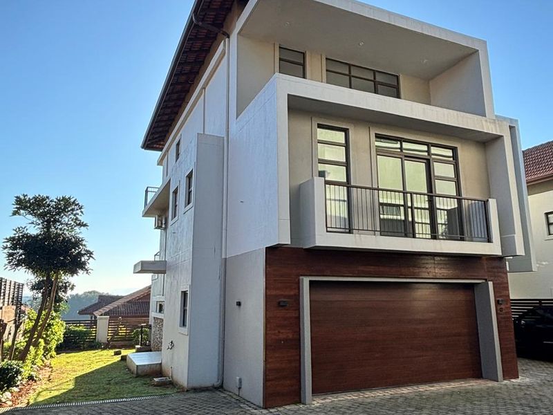 Live eco-friendly, close to Umhlanga's shops and beach in prestigious Izinga — open-plan living, modern kitchen and private balcony with panoramic views; three beds, two baths, two secure parking.