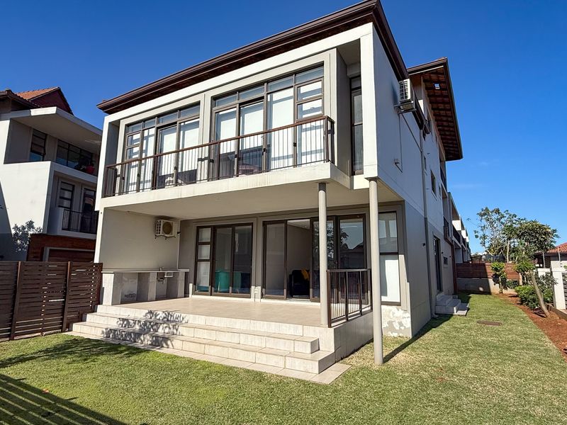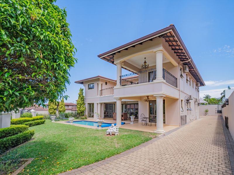 Entertain effortlessly in this Umhlanga corner home, enjoying coastal lifestyle, gated security and a patio opening onto a lush garden — six bedrooms, five baths, double garage.