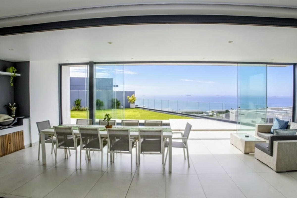 Sunrise-to-sunset coastal living in Balize Coastal Estate, minutes from Umhlanga and King Shaka. Elevated villa with sea views from both floors, stack-back glass doors, four bedrooms, pet-friendly garden.