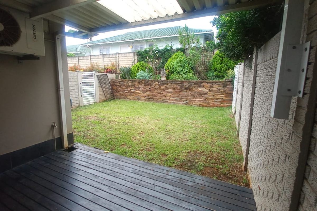 Family-focused living in Somerset Park, Umhlanga — minutes from Gateway shopping and top schools. Open-plan flows to a private garden and patio; three bedrooms, two baths, double garage.