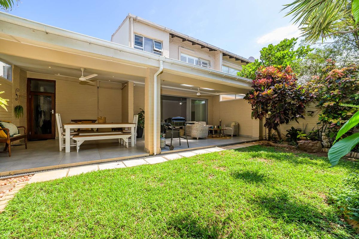 Walk to Umhlanga Village and promenade for cafés, dining and beaches; enjoy indoor-outdoor entertaining on the covered patio and low-maintenance garden. Three bedrooms, two bathrooms, automated garage.