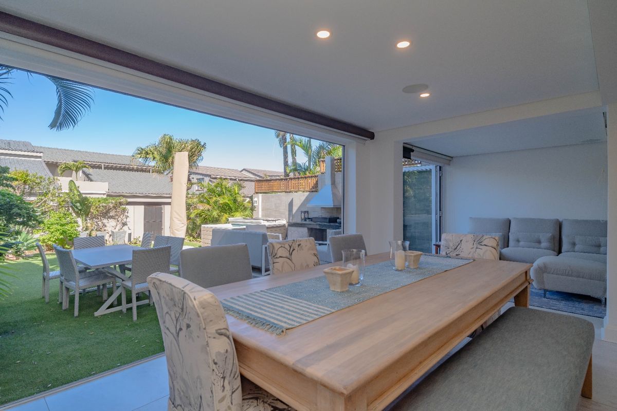 Entertainer's coastal lifestyle on prestigious Marine Drive — steps from Umhlanga village and the beach, private Jacuzzi and outdoor living. Four en-suite bedrooms and two secure garages.