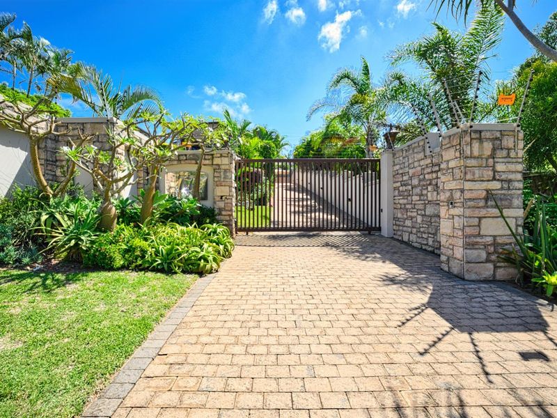 Entertainer’s coastal lifestyle in coveted Umhlanga — light-filled living flowing onto a covered veranda framing ocean views. Includes a modern island kitchen and a granny flat; five beds, four baths.