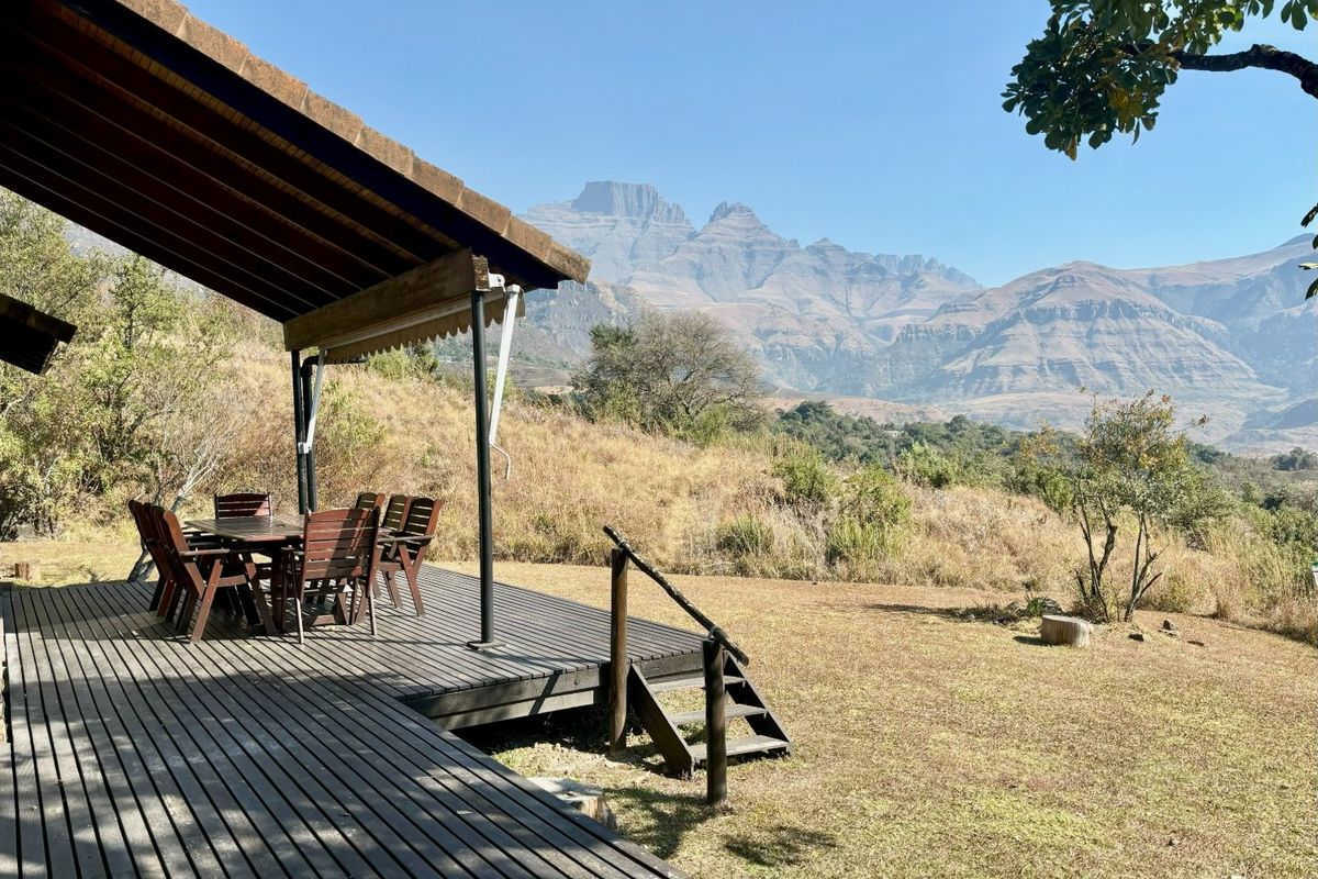 Wake up to Cathkin Peak views from a private veranda in Fernwood's Champagne Valley — share-ownership chalet with rotating weeks, fireplace, daily housekeeping; 3 beds, 2 baths.