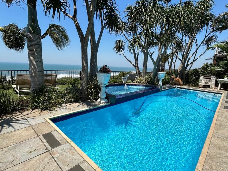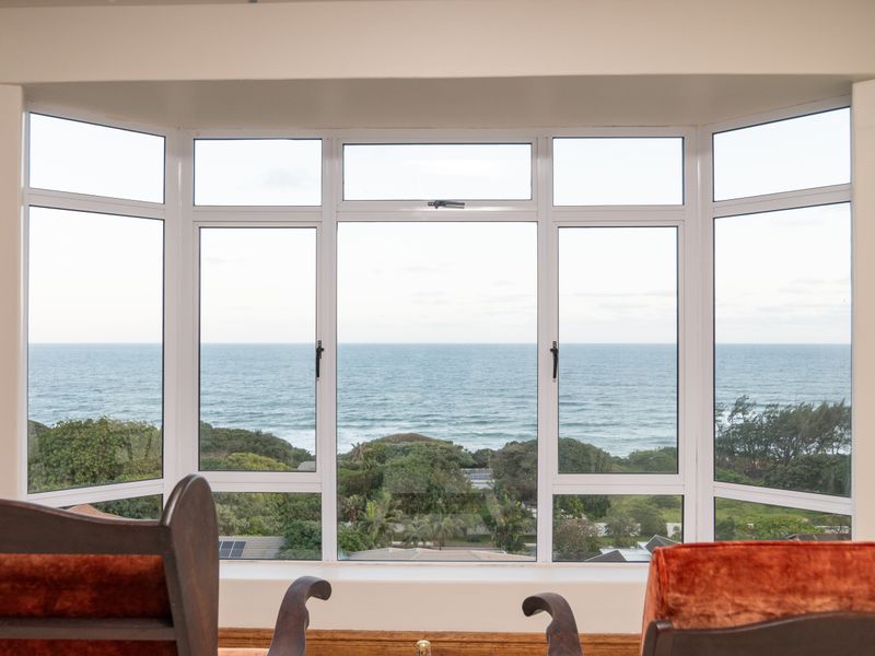 Wake to whale and dolphin sightings from an elevated Zinkwazi home, minutes from the beach; open-plan living with large patio, enormous garden, flat driveway for boat trailers.