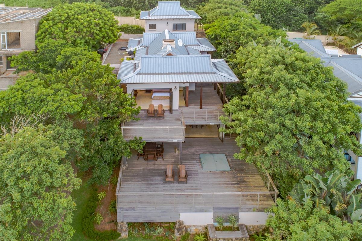Embrace Balinese-style coastal living at Nkwazi Ridge, minutes from Zinkwazi Beach and lagoon, with expansive wooden decks, jacuzzi, sea views, and four bedrooms, four bathrooms.