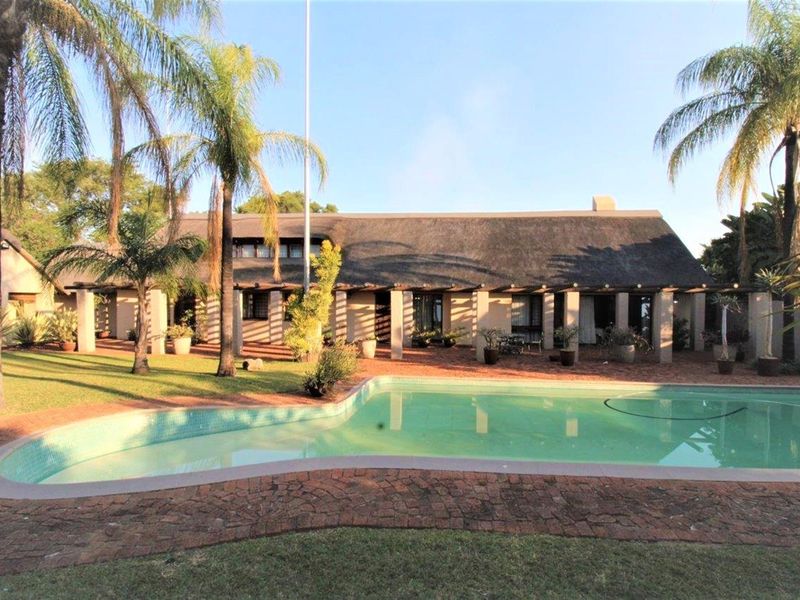 Create a thriving guest-house lifestyle in central Bela-Bela with a characterful thatched roof, Rhodesian teak finishes and pool — five bedrooms, three bathrooms, double garage.