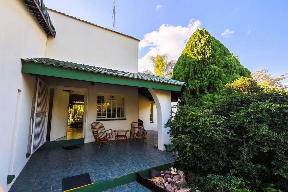 This charming 2-bedroom, 2-bathroom home sits on a generous 1178m2 corner stand, surrounded by a lush, private garden and shaded by mature trees. The home boasts a warm and inviting atmosphere with spacious living areas, open-plan kitchen and dining, a large TV lounge, and a cozy front stoep to enjoy your morning coffee.