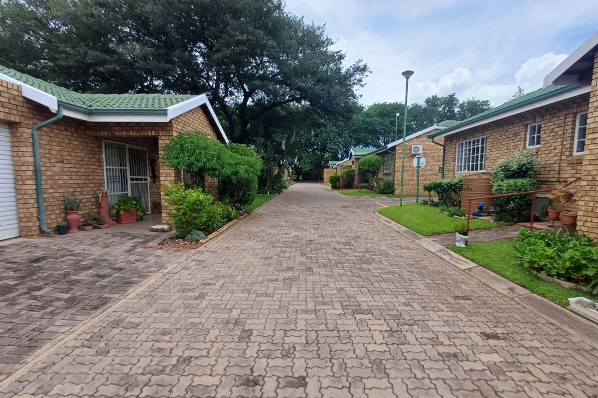 Sociable retirement living among mature trees in Bela Bela, Limpopo, with daily-serviced communal gardens and an on-site conference hall. Open-plan kitchen, private front garden, two bedrooms, one bathroom, covered parking.