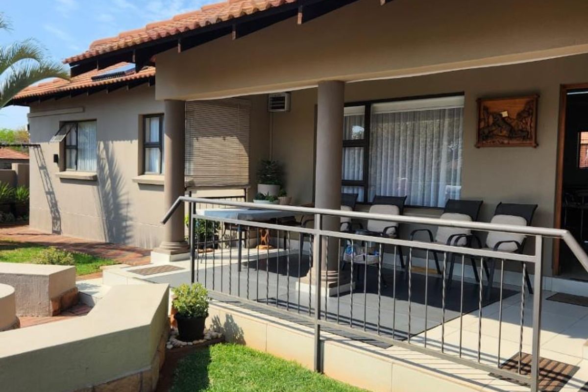 Alfresco entertaining and relaxed, secure, well-maintained complex living with a private courtyard, built-in braai and boma — modern open-plan kitchen and three bedrooms, two bathrooms.