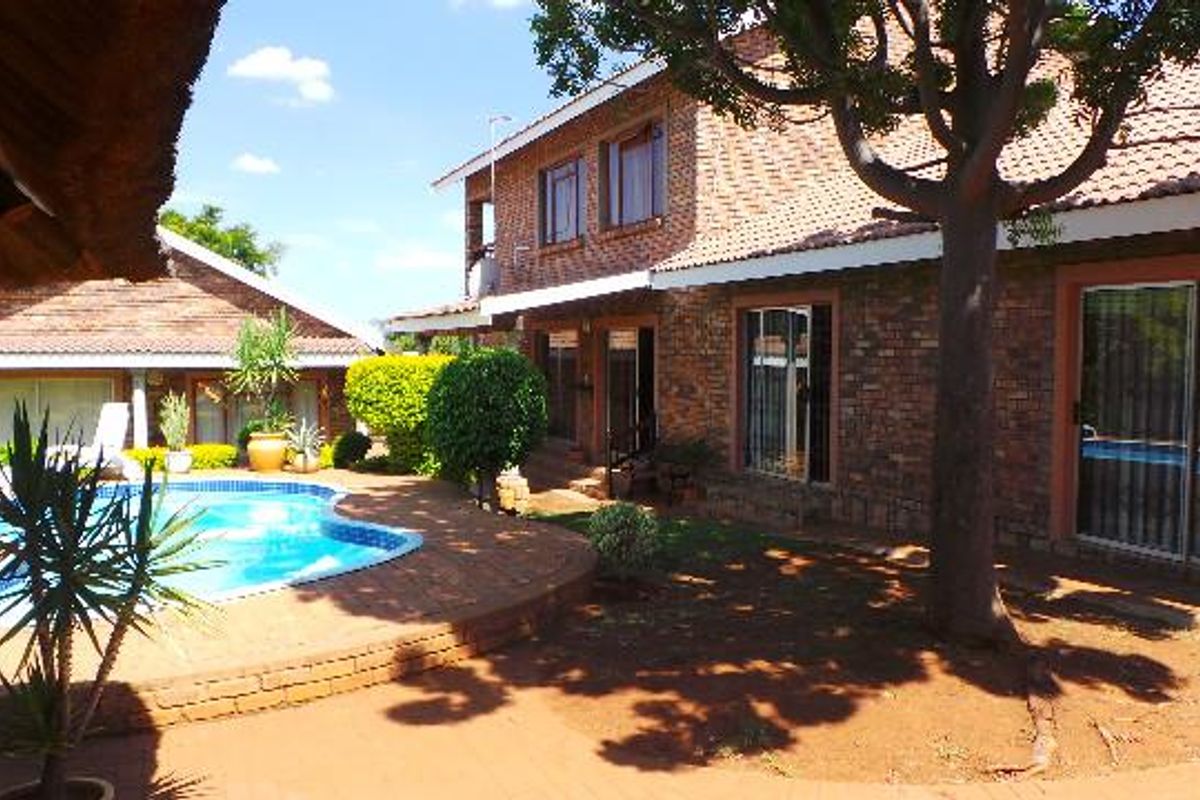 Well planned living areas and neatly tiled. Beautiful garden with a big swimming pool , a well planned entertainment area a build-in-braai and Jacuzzi with enclosed sliding doors . The house offers you 4 bedrooms , 2 bathrooms , a separate toilet , lounge , dining room , kitchen , scullery , 2 garages , 2 carports , 1 bedroom flat . The main bedroom is on the upper level with a large patio , were you will have the best view ever!