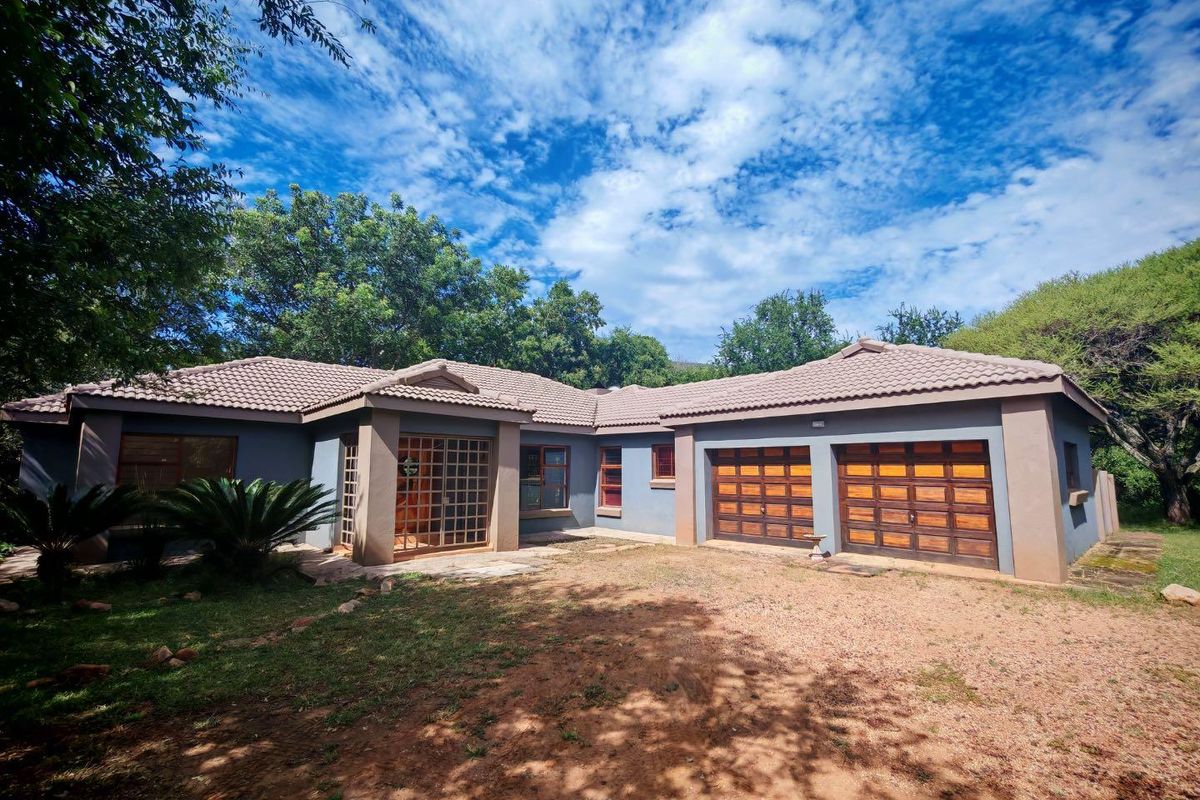 Riverfront retreat in a peaceful estate near Burgersfort and Lydenburg, wildlife in the garden, open-plan kitchen and riverside stoep with built-in braai; 3 beds, 2 baths, double garage.
