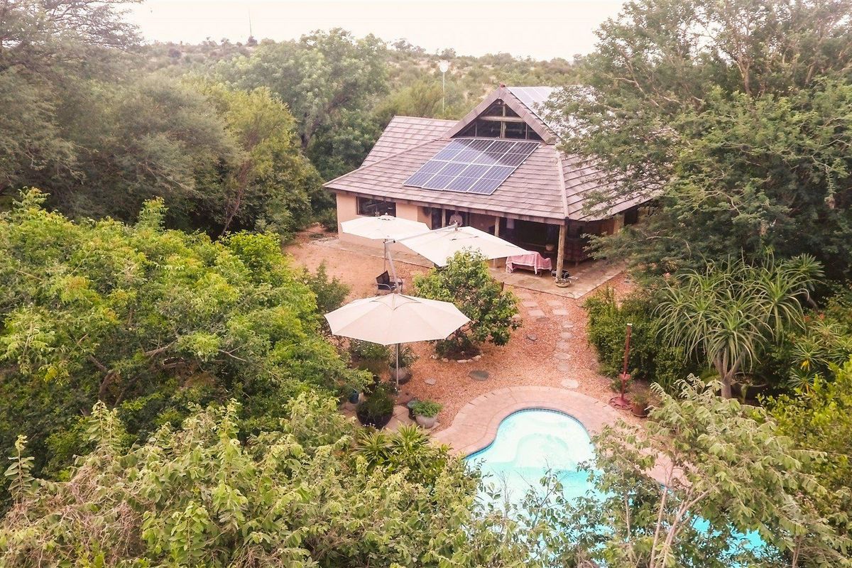 Additional features include a solar system comprising 22 solar panels, 10 Pylontech batteries and inverter; borehole and 5,000L water tank, garden shed and secure elephant-proof fencing around the main homestead.