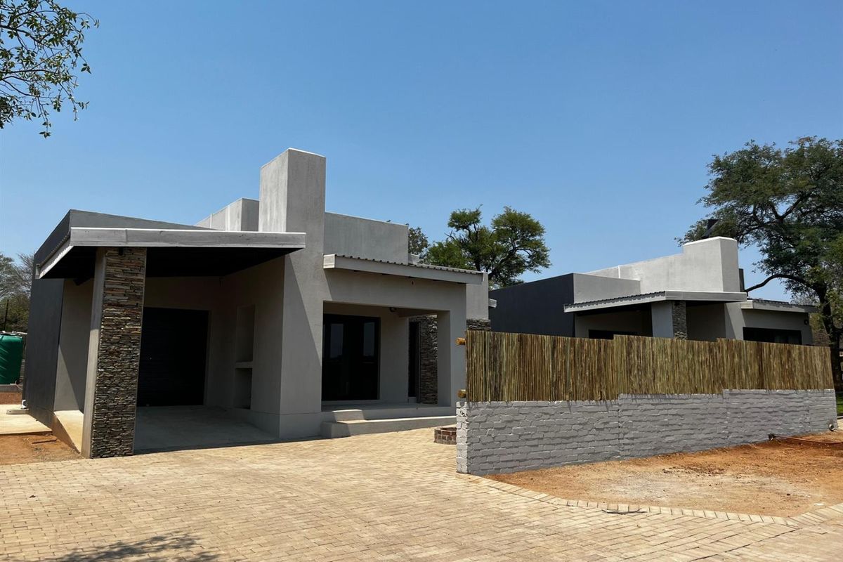Embrace off-the-grid living in Hoedspruit town with indoor-outdoor flow and a covered patio with built-in braai — two en-suite bedrooms and convertible single garage.
