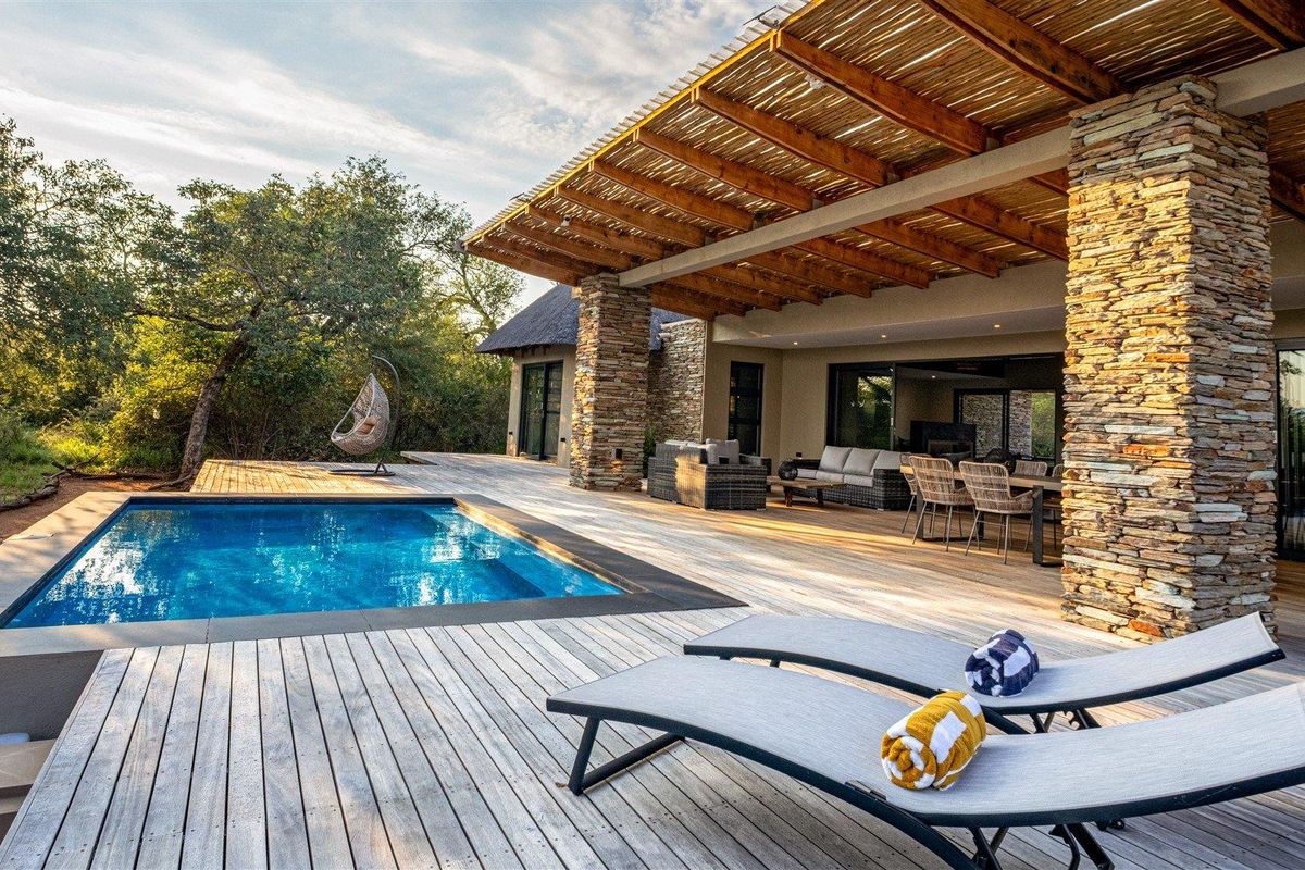 Embrace refined bush living in Zandspruit Bush & Aero Estate, minutes from Hoedspruit and Eastgate, with private 1,000m airstrip access — three bedrooms, two baths, double garage.