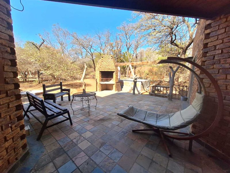 Bushveld living in Leeupoort with a covered built-in braai for effortless outdoor entertaining; includes a one-bedroom flatlet, four bedrooms and three bathrooms.