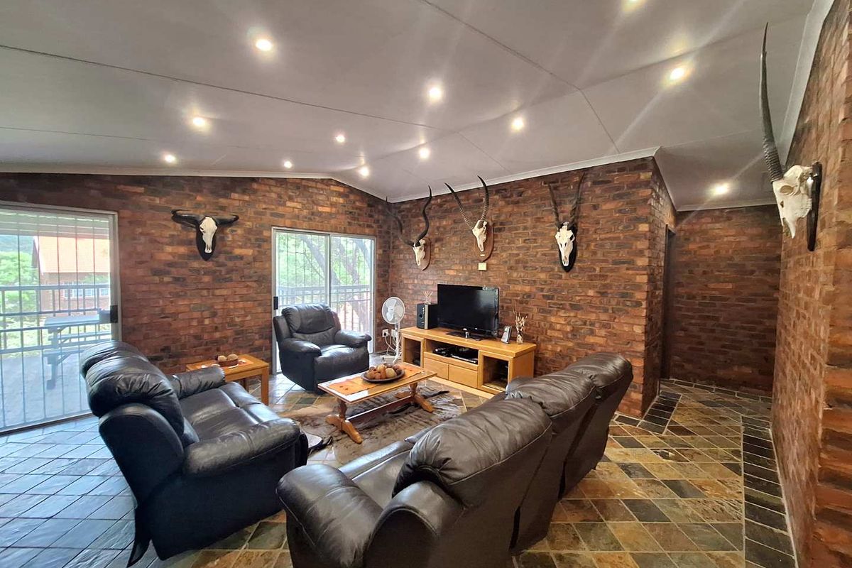 The main en-suite bedroom is a private sanctuary, opening directly onto the patio, allowing you to wake up to beautiful bushveld views every morning. This room offers both luxury and convenience, providing a tranquil escape from the hustle and bustle of daily life.