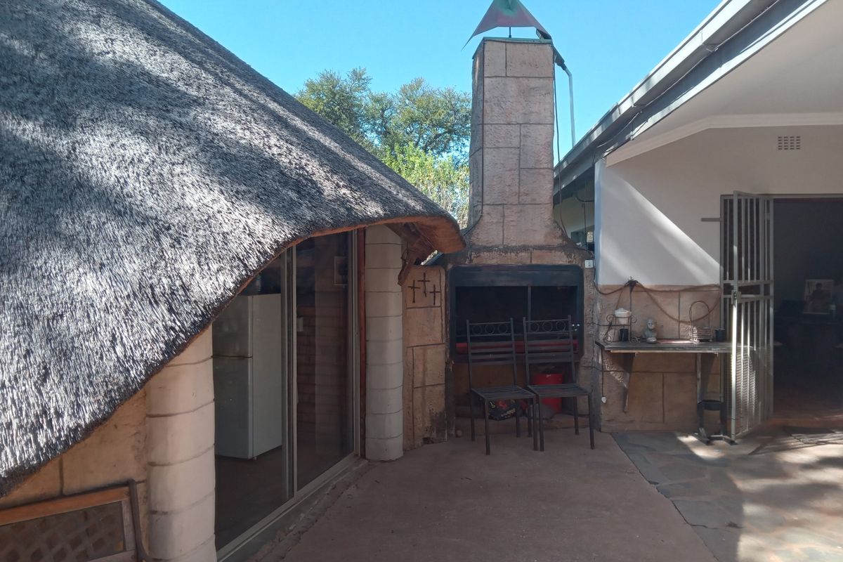 Entertainer's dream for relaxed family living on a generous 1480 m² plot in a tranquil neighborhood, featuring a lapa with built-in braai, borehole, lush garden, and one-bedroom flatlet.