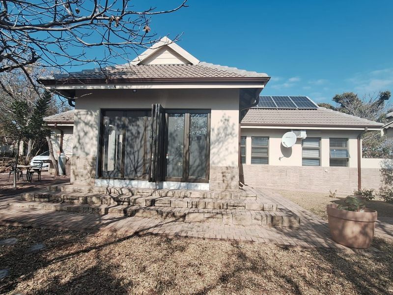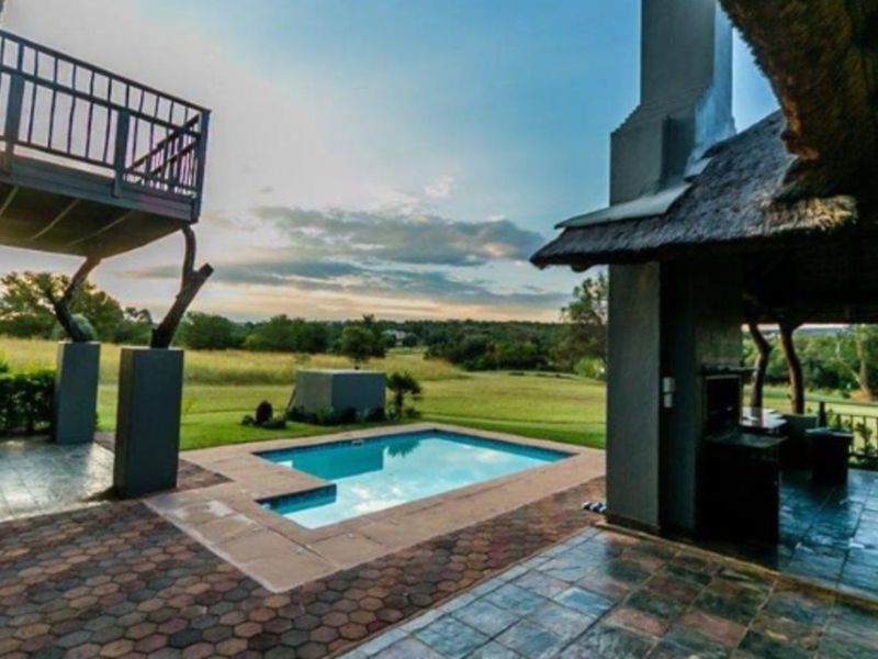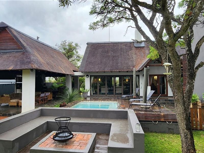 Embrace bushveld golf-living at Koro Creek Bushveld Golf Estate, with private greenbelt borders, a covered lapa and built-in braai overlooking pool and garden — open-plan living with fireplace and solar backup.
