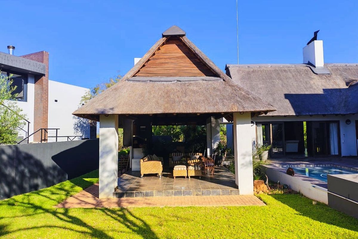Experience the epitome of Bushveld living in this luxurious solar-powered sanctuary, nestled on a hill within the prestigious Koro Creek Bushveld Golf Estate. Boasting panoramic views over the treetops and golf course, this thatched-roof residence offers unmatched privacy, seclusion, and elegance.
