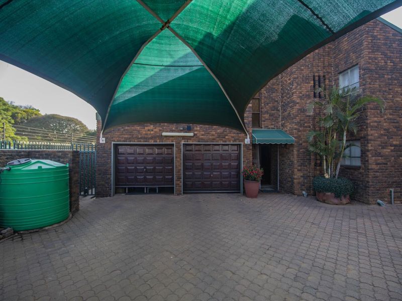 Effortless family living in a peaceful neighborhood with pool and boma braai — double-story home with covered stoep and balcony, three bedrooms, two bathrooms and double garage.