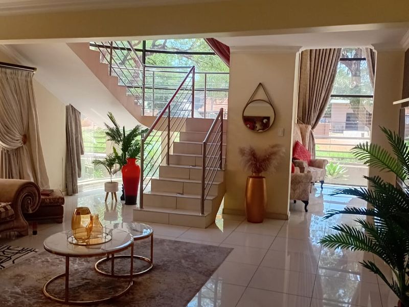 Entertainer's dream in a secure Polokwane estate, featuring expansive balconies with soothing views; six bedrooms, five bathrooms and a double garage for effortless family living.