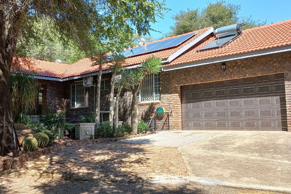 Embrace bushveld living in Leeupoort Vakansiedorp, between Thabazimbi and Bela-Bela, with free-roaming wildlife, covered patio and splash pool. Three beds, two baths, double garage.