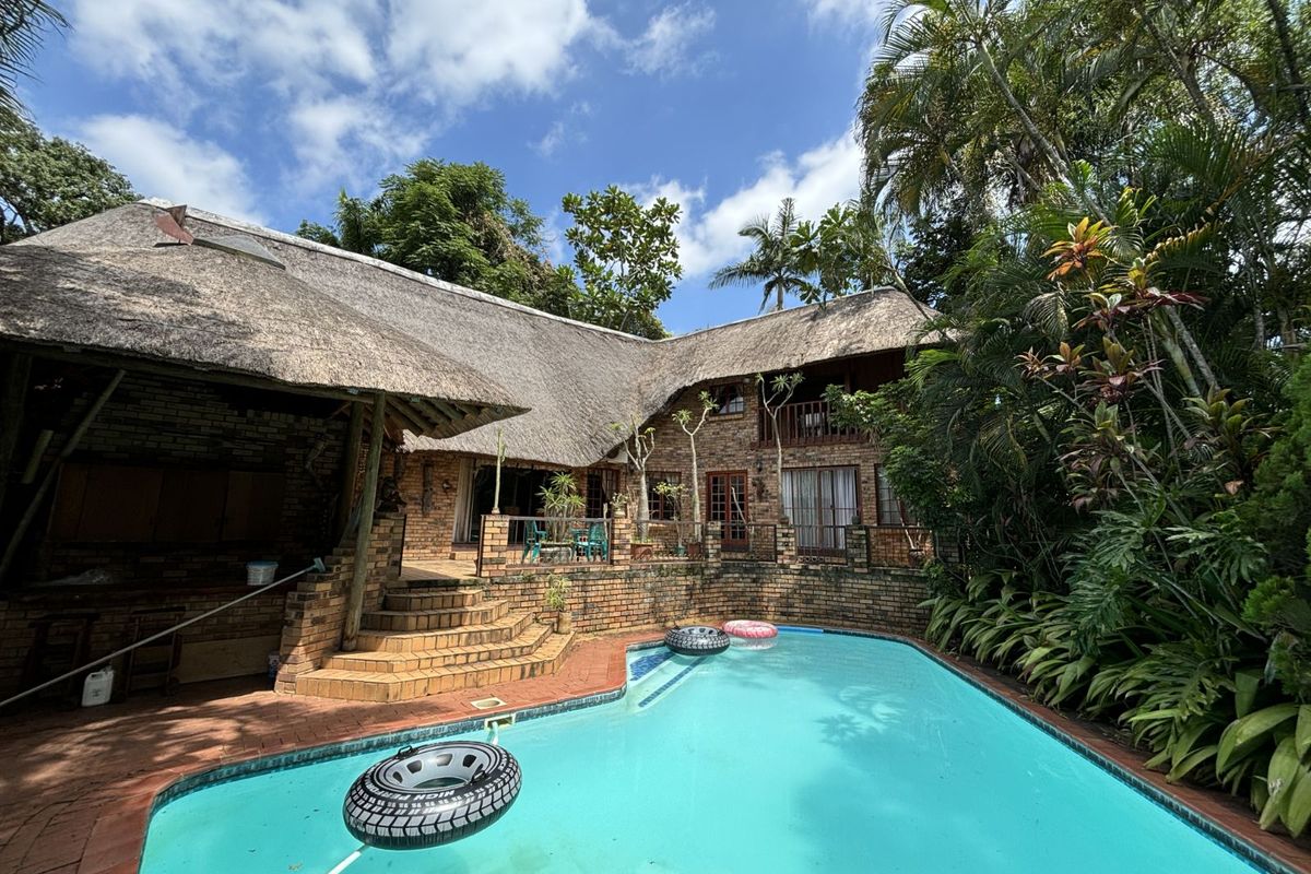 The thatch roof adds character and charm to the home, while also presenting an opportunity for a new owner to add value, as some TLC is required. Outdoors, the property boasts a swimming pool, a welcoming veranda, and a dedicated braai area — perfect for relaxed outdoor living and enjoying the rich garden filled with established trees.