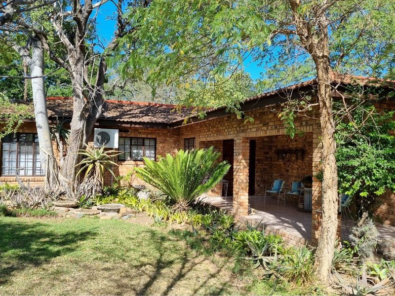 Lowveld lifestyle with verandah, mature garden and outdoor entertainment area in Hectorspruit, halfway between Lebombo border and Nelspruit — three bedrooms, three baths and covered parking for four.