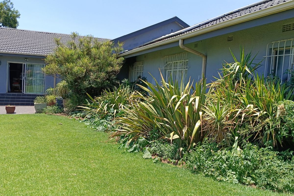 This space features a swimming pool, a built-in braai, and enough room to host events or birthday parties. The entertainment area is fully covered and includes double sliding doors leading to the garden.