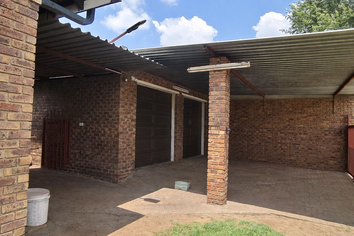 Upon entering through the main gate, you are welcomed by a double built in garage with wooden doors. The covered area between the garage, main house, and flatlet provides secure and convenient access to the home. Tucked away behind the garage is a built in braai area, offering privacy and practicality for entertaining.