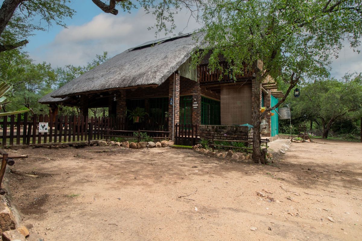 Relaxed bush living in Marloth Park, steps from roaming wildlife — open-plan living with loft and viewing deck overlooking the entertainment area; one bedroom, two bathrooms and four covered parking.