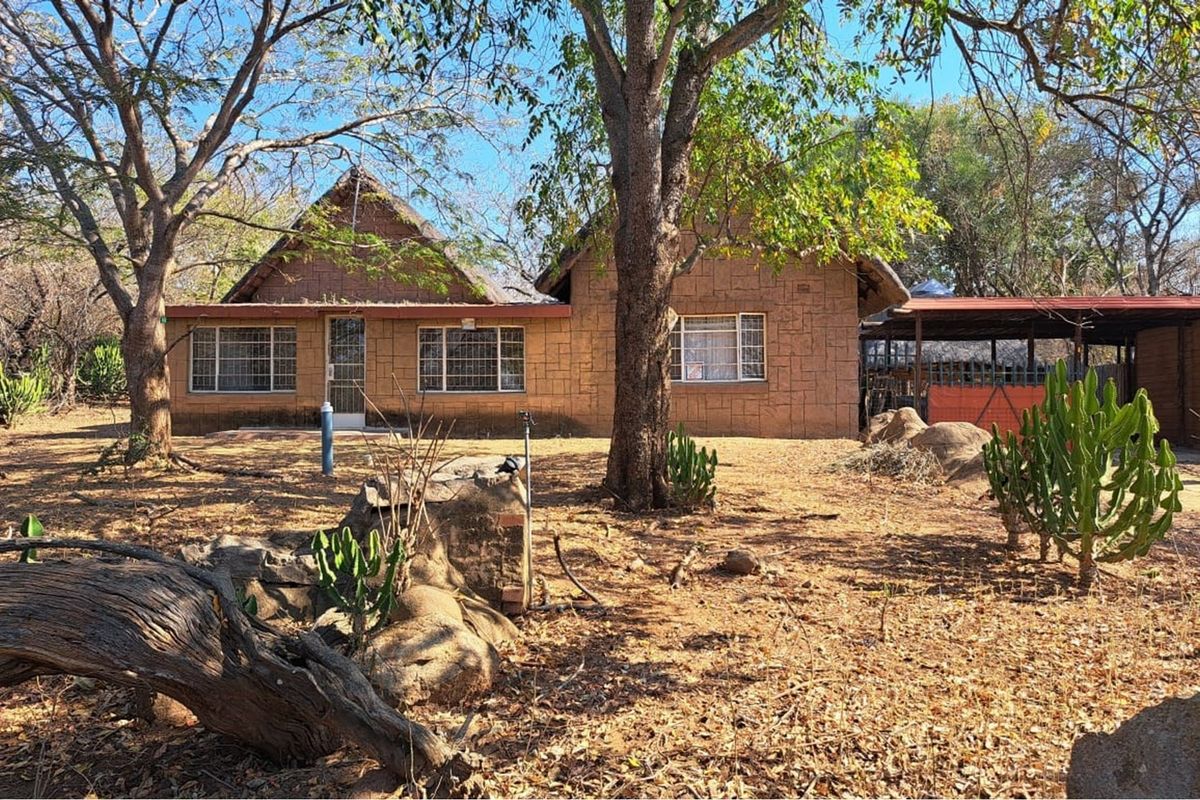 Bushveld retreat in Marloth Park offering relaxed outdoor living and wildlife on your doorstep, open living flowing to a covered patio with built-in braai and jacuzzi; two bedrooms, two bathrooms.