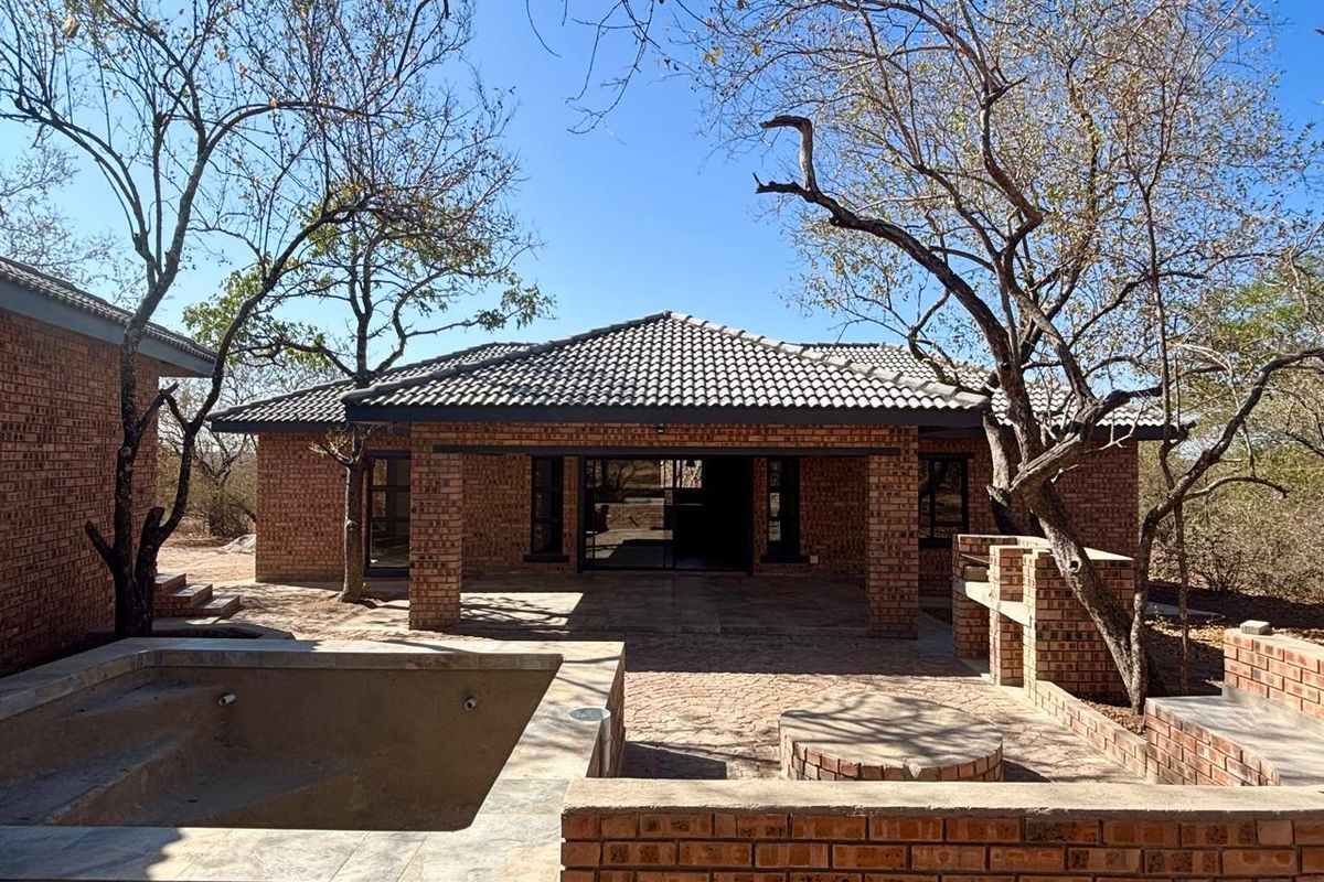 3 bedrooms, 3 bathrooms, 2 covered parking spaces on 1536 m² land in Marloth Park. Ideal for holiday or permanent living.