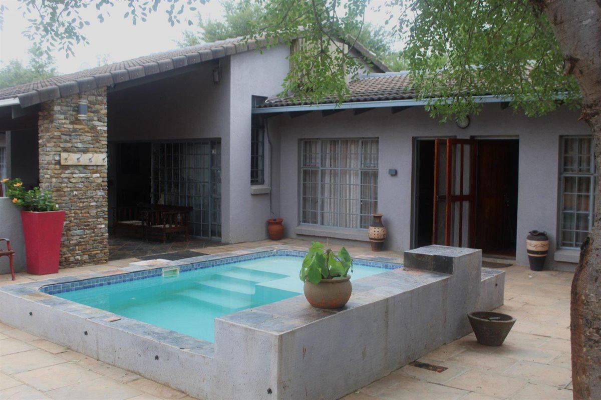 Live the bushveld retreat lifestyle in Marloth Park on a riverfront property bordering Kruger — income-ready lodge with a riverfront viewing deck for sundowners and seven en-suite rooms.