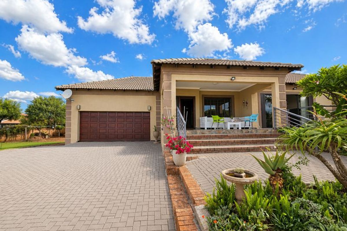 Entertainer's family retreat close to Midwater Centre and Middelburg Mall, featuring an expansive back garden with braai patio, modern kitchen, three bedrooms, two baths, double garage.